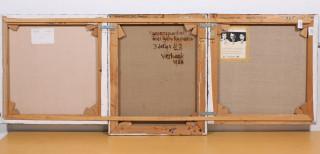 doek, bestaande uit drie delen, totale afmeting 146 x 54 cm.