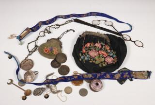 w.o. zilveren penningen, tasbeugels en zakhorloge.