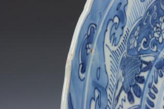China, paar blauw-wit porseleinen ' lotus' schotels, Kangxi,