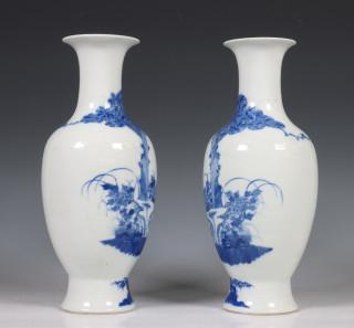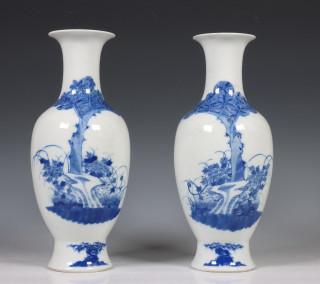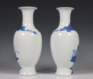 China, paar blauw-wit porseleinen vazen, 20e eeuw,