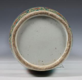 gedecoreerd met twee draken tussen bloemen op een turquoise ondergrond (gerestaureerd)