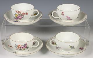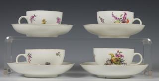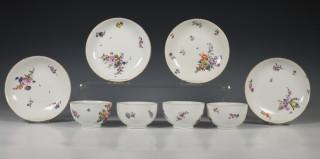 Duitsland, Meissen, vier kop en schotels, 18e eeuw.