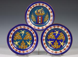 N.V. Plateelbakkerij Zuid-Holland, drie plateel schotels, ca. 1930.