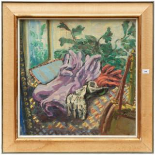 Stilleven met handschoenen bij een venster