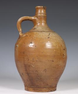 Duitsland, bruin steengoed kruik, 18e eeuw.