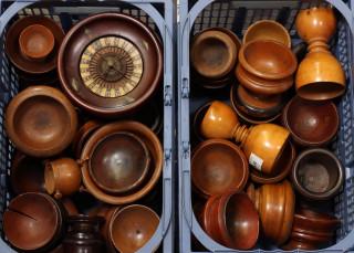 Diverse 'treenware' gedraaid houten schaaltjes, bakjes en bekers, vnl. 19e eeuw.