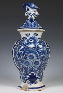 Delft, aardewerk dekselvaas, 18e eeuw.
