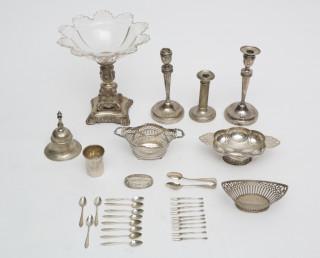 Frankrijk, coupe met kristallen schaal en divers klein zilverwerk,