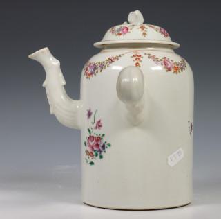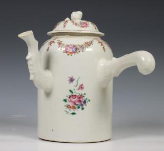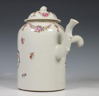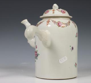 China, famille rose porseleinen chocoladekan en deksel, 18e eeuw,