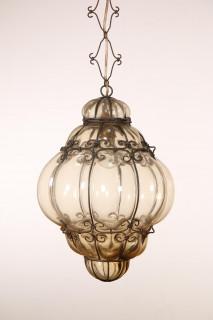 Uitgevoerd in lichtbruin glas met draadwerk.