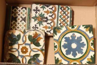 Gevormd als L-stuk. Hierbij vier tegels met Moorse decoratie.