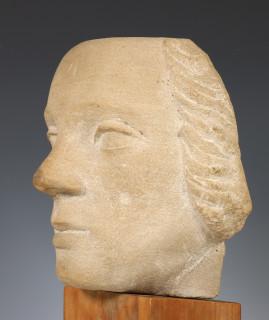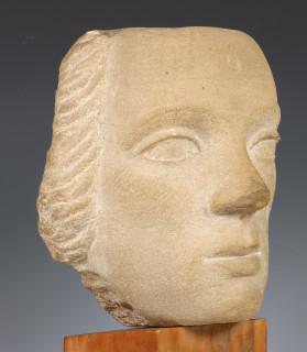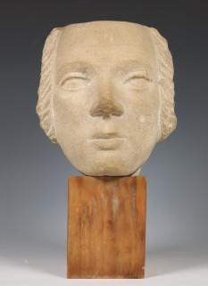Willy Boers (1905-1978), gekapt zandstenen sculptuur, 'vrouwenhoofd';
