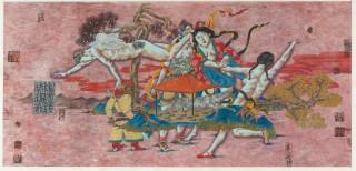 inkt, aquarel en gemengde techniek op papier, gesign. met stempel, 1997, 73 x 35 cm.