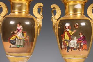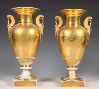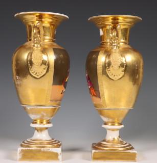 Frankrijk, paar verguld porseleinen vazen, Empire,
