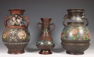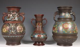 China, drie bronzen-cloisonne vazen, begin 20e eeuw,