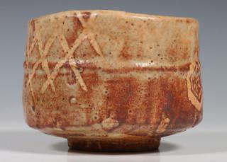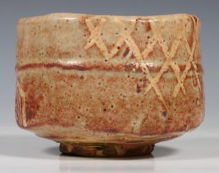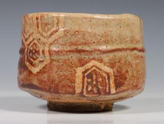 Japan, shino ceramic teabowl, chawan, early 20th century, the base with monogram, ex collection J.W.N. van Achterbergh, Amstelveen (label)