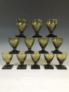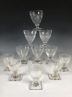Allen uitgevoerd met vierkante voet. Bestaande uit twaalf Rijnwijn glazen, acht heldere rode wijn en vijf witte wijn glazen.