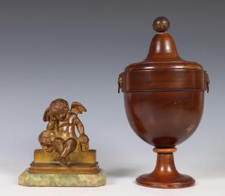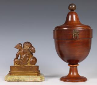 Gedraaid mahoniehouten kastanjevaas en verguld bronzen sculptuur, 19e eeuw.