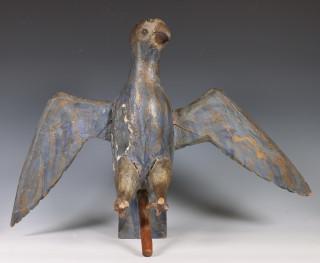 Polychroom geschilderd houten sculptuur van een vredesduif.
