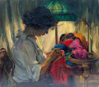 Handwerkende dame. Mogelijk is afgebeeld Albertine Alexandrine Broese van Groenou - Holle