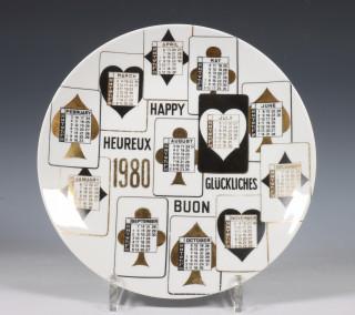 Fornasetti-Milano, Piero Fornasetti (1913-1988), vintage porseleinen wandschotel, '13e Piatto Calendario - Happy 1980.'
