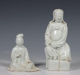 China, blanc-de-chine figuur van Guandi en van Guanyin, laat Qing-dynastie,