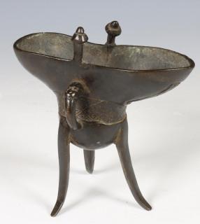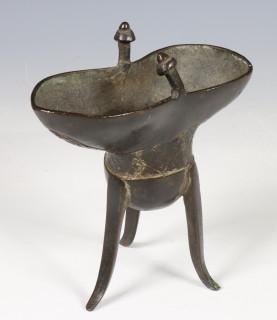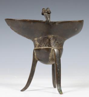 China, bronzen plengofferbeker 'Jüe' in archaïsche stijl, Qing-dynastie, mogelijk 17e eeuw,