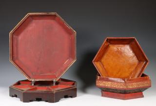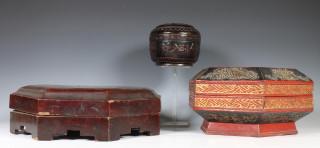 China, geperst lederen en twee gelakt houten dekseldozen, begin 20e eeuw