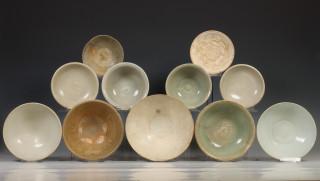 China, collectie celadon en witgeglazuurde kommen en schotels, Song-dynastie en later,