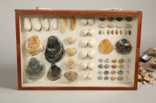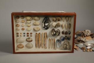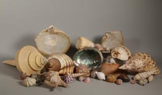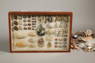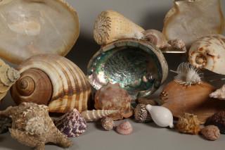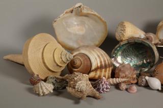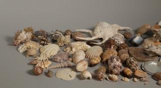 Collectie naturalia, diverse grote schelpen, strandvondsten en varia.