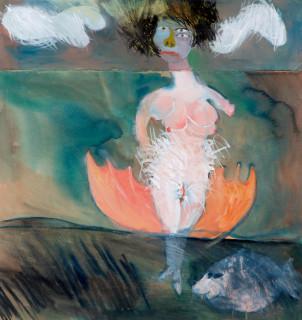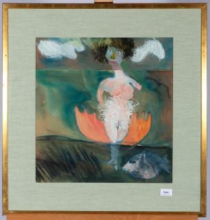pastel, aquarel en gouache, verso met gedicht en gesigneerd, 46 x 43 cm.