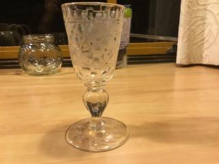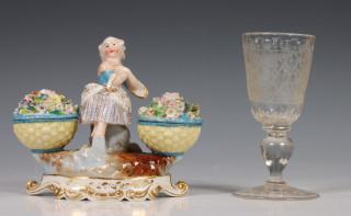 Geslepen glazen wijnglas en Parijs, Jacob Petit, porseleinen inktstel, 19e eeuw.