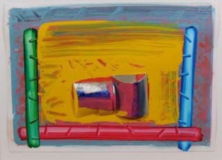 gemengde techniek op papier op board, verso gesign. 1997, incl. lijst afmeting 56 x 72 cm.