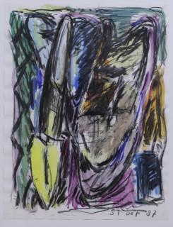 viermaal houtskool en pastel, gesign., '87, 65 x 50 cm.