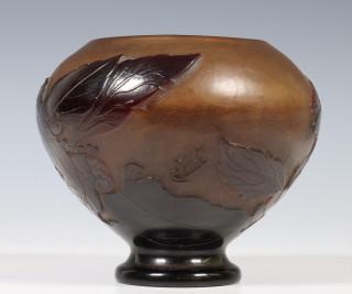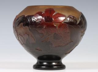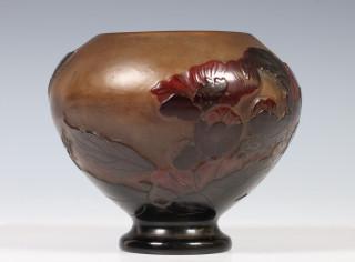Frankrijk, rood/bruin cameo glazen vaas, Émile Gallé, ca. 1905,