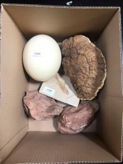 w.o. struisvogelei en fossiel van vis.