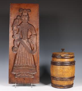 Houten met wilgentenen gekuipt tabakstonnetje, 19e eeuw.