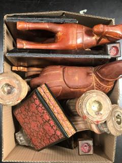 w.o. houten kandelaren, schilderingen, prentjes, en klok.