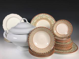Hierbij acht witte dinerborden Wedgwood en servies gedeelte gemerkt Creative Tableware, bestaande uit vier schalen, twee dinerborden, acht ontbijtborden en zes schotels.