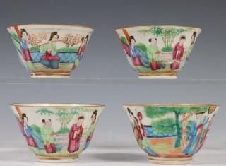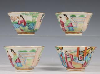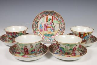China, vier famille rose Kantonese koppen en vijf schotels, Qing dynastie, 19e eeuw,