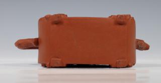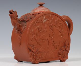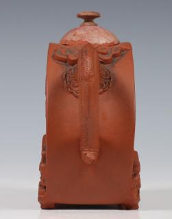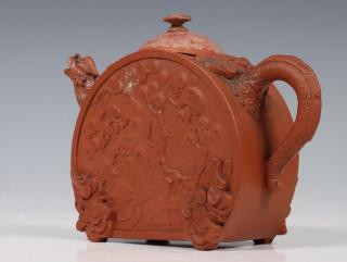 afgeplat model, relief van landschap, de tuit als draak, houten deksel (tuit gelijmd)