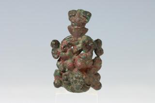 China, small bronze belt hook, probably Warring States period, modelled as stylised dragons, on perspex stand (wear), provenance: acquired with Art Treasures Gallery, Hong Kong, 1990s