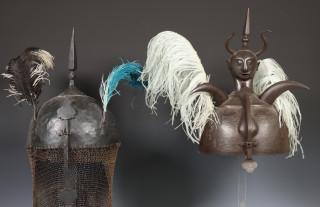 Twee ijzeren Kulah Khud helmen naar antiek voorbeeld.