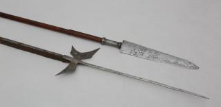 een lans met breed blad, 17e /18e eeuw en een hellebaard met stempel van een wapensmid, 17e eeuw