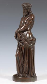 'Ecce Homo'. Christus met doornenkroon, staand met geketende handen en mantel op de heup. Waarschijnlijk Zuid Nederland. Volgens notitie overleden eigenaar aangeschaft in 1987