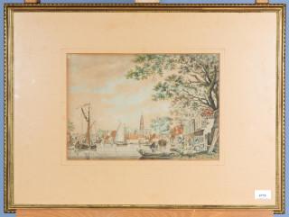 Binnenhaven met op de achtergrond de Grote Kerk te Haarlem