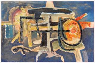 gemengde techniek op papier, gesign. m.o. Marinus v.d. Boezem '59, 24,5 x 37 cm.