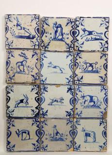Twaalf blauw aardewerk dierendecor tegels, 1625-1650,