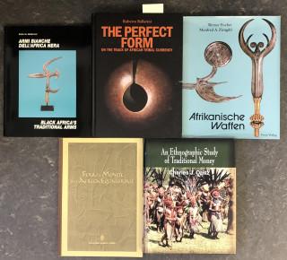 Collection of five books on traditional weapons and currencies;