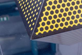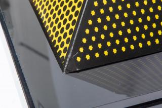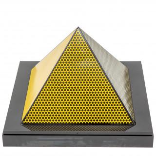 Screenprint in yellow and black, on lightweight board folded into a three-dimensional pyramid. under plexiglasscover, signed and numbered 32/300